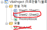 다시 "Sheet2"에서 "Module1"로 돌아갑시다